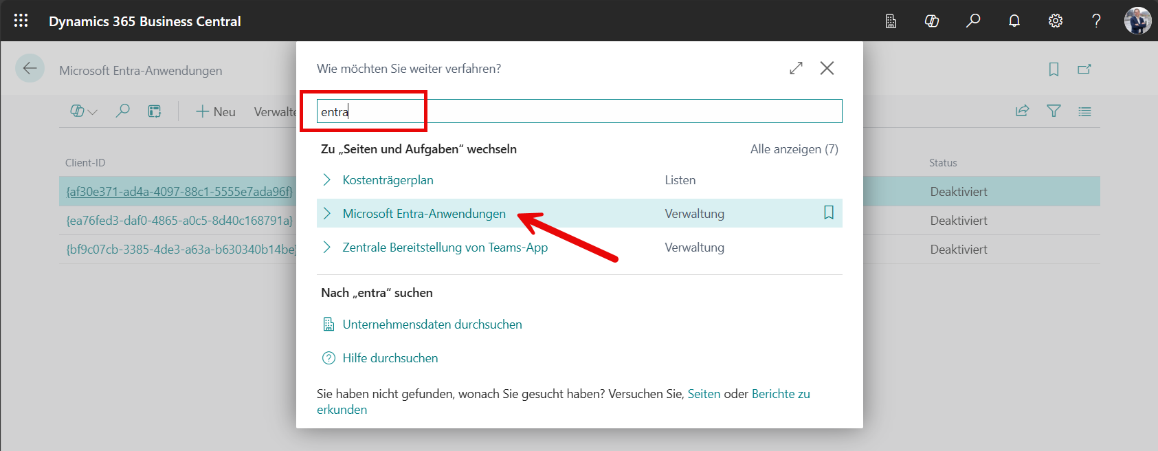 3. Konfiguration der Anwendung in Business Central / Anpassung der Berechtigungen