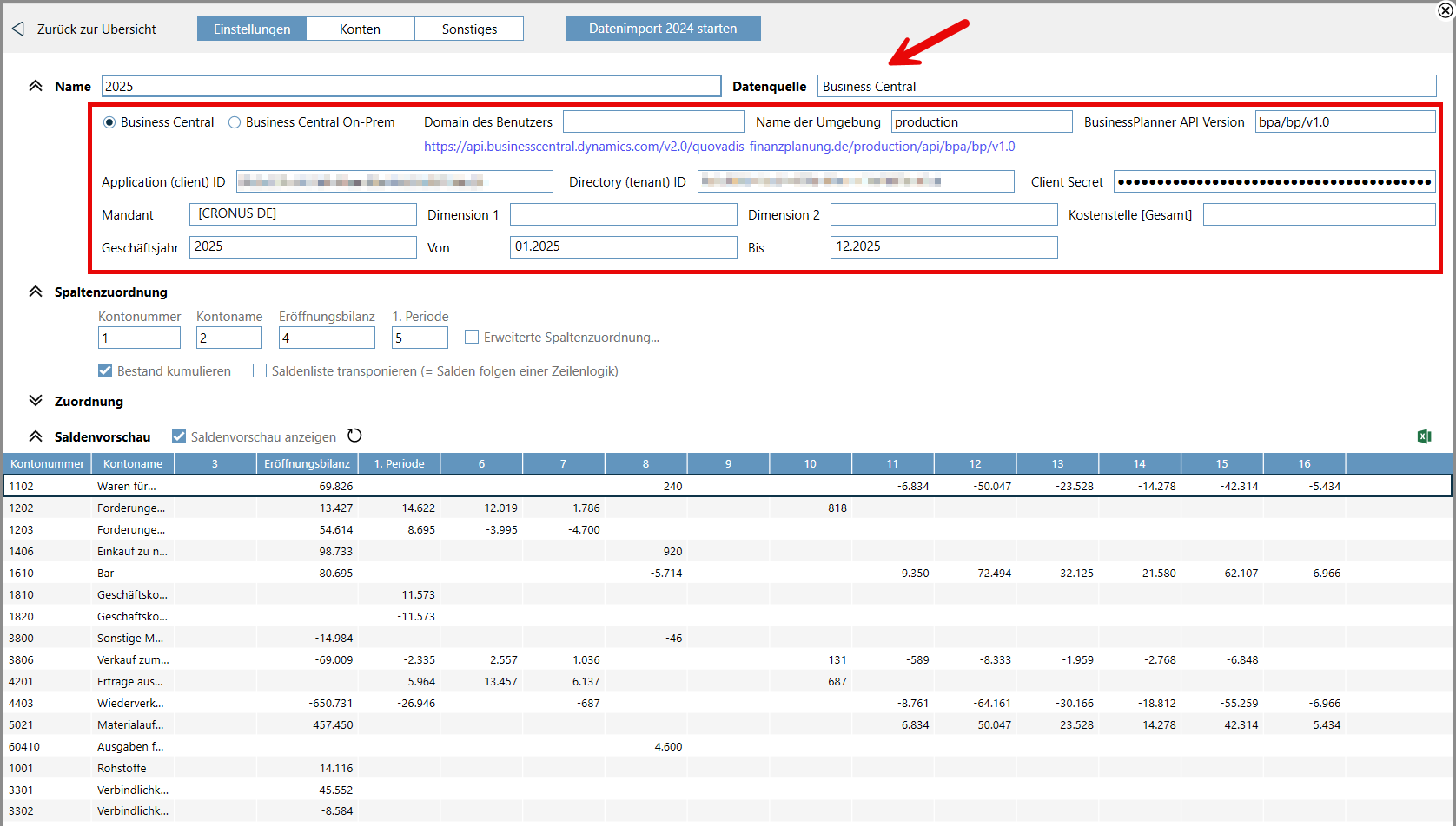 4. Einrichtung BusinessPlanner-Datenimport